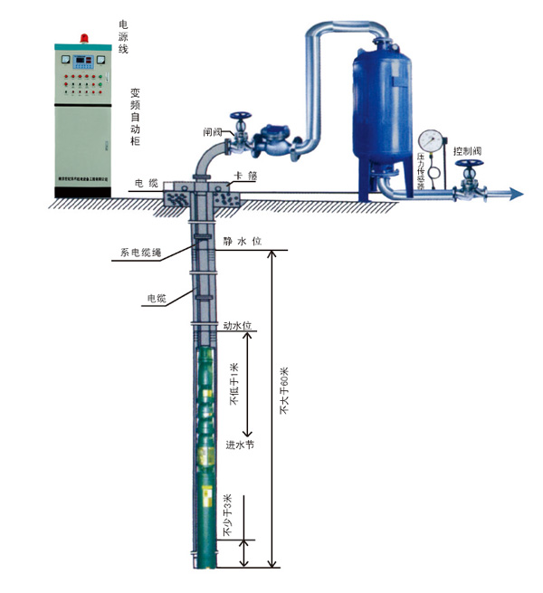 7、保護功能齊全:具有完備的過載、短路、過壓、欠壓、缺相、過流、短路、水源缺水等自動保護功能。在異常情況下能進行信號報警、自檢、故障判斷等。